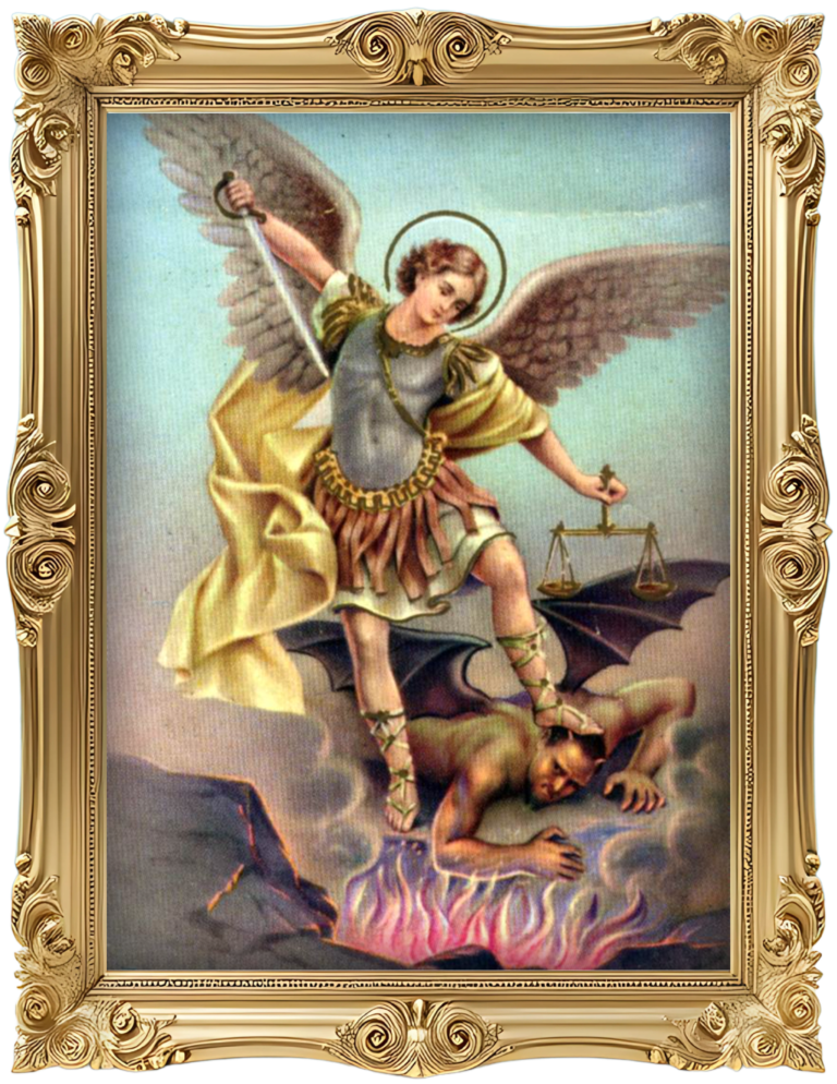 Ó Chefe dos Exércitos Celestes, que a Vossa presença incuta terror nos espíritos malignos que tentam me desviar. Afastai de mim e de minha casa toda influência diabólica.